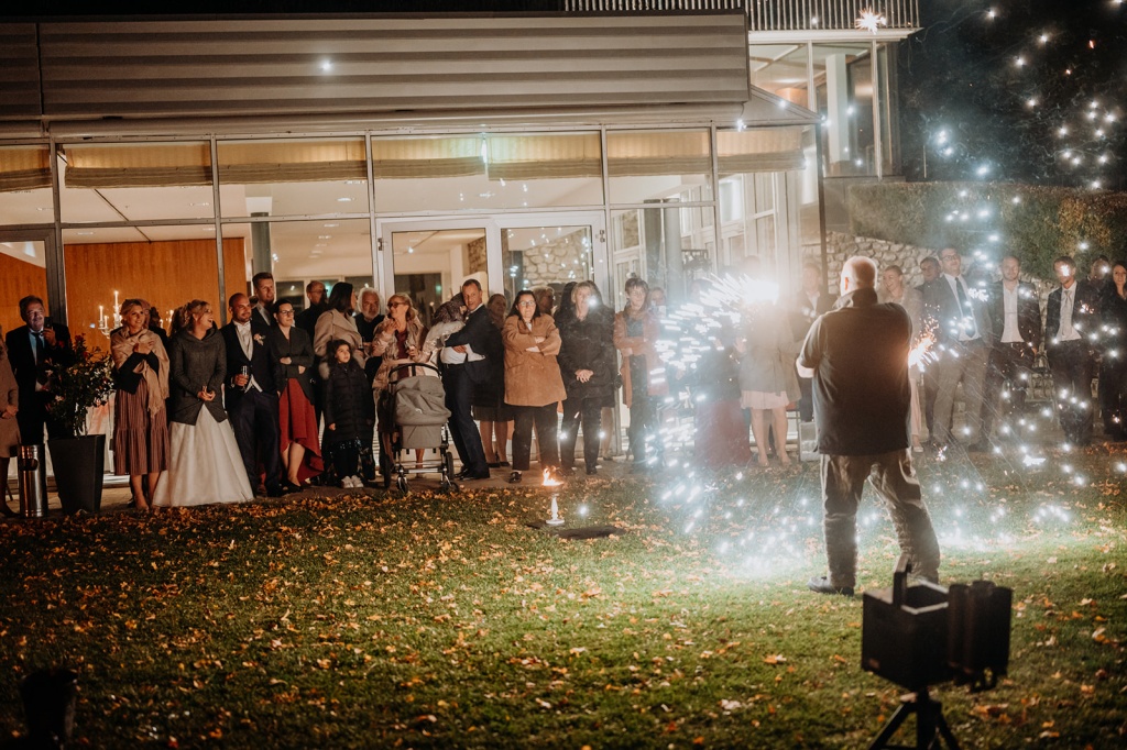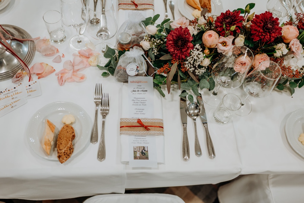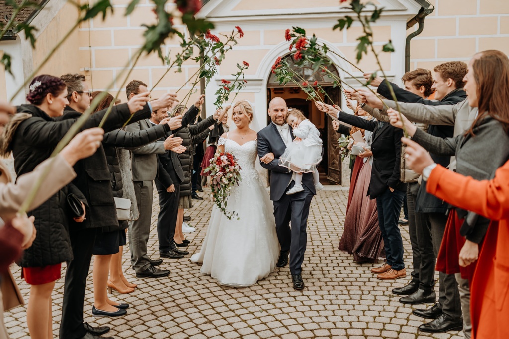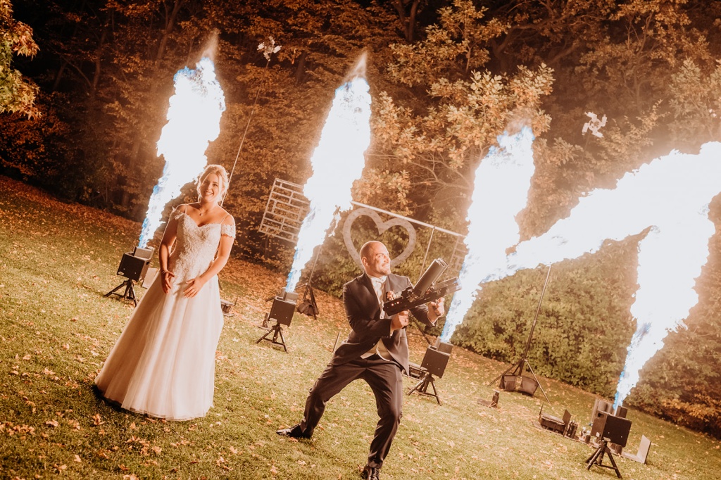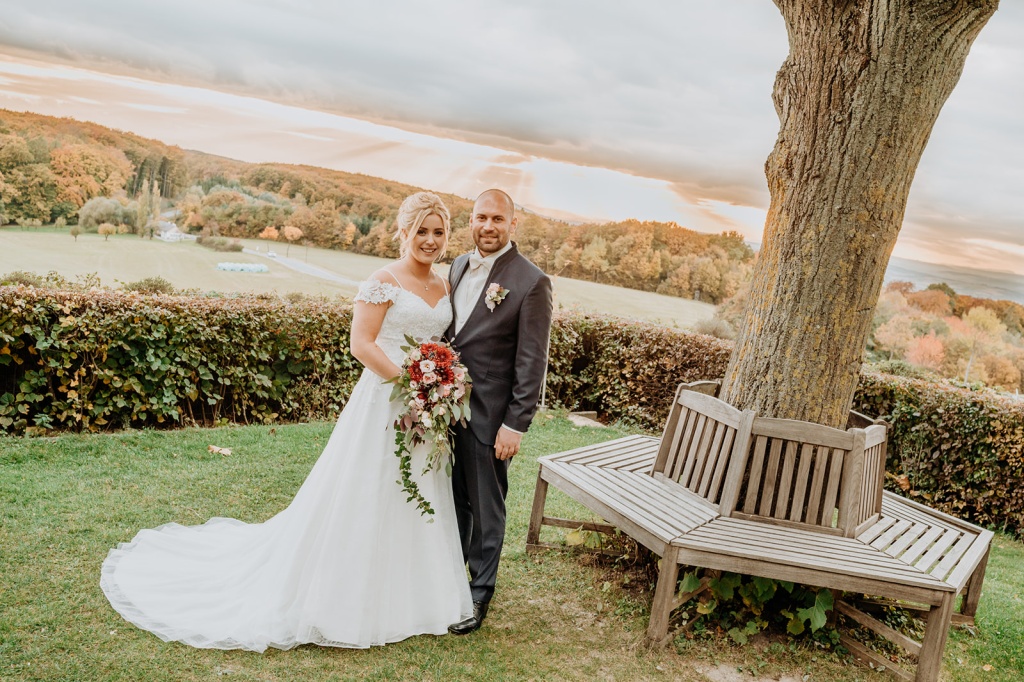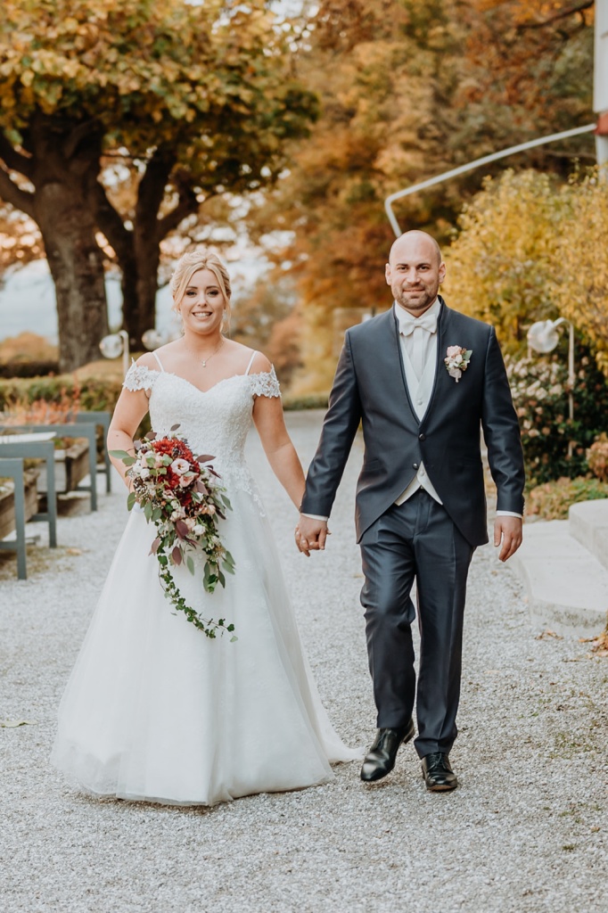 Traumhafte Herbsthochzeit mit kirchlicher Trauung in Langenrohr und Tafel am Tulbingerkogel inkl. Feuershow