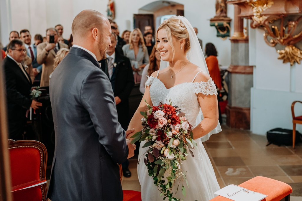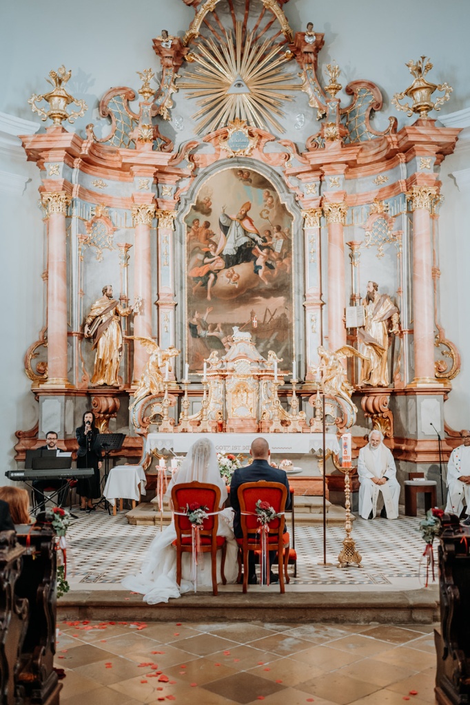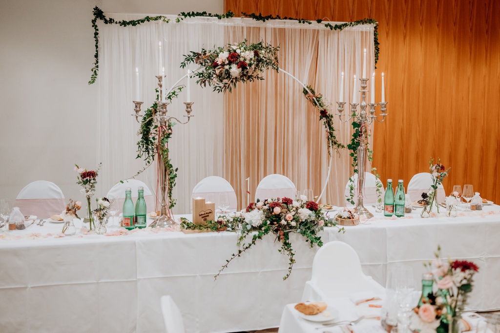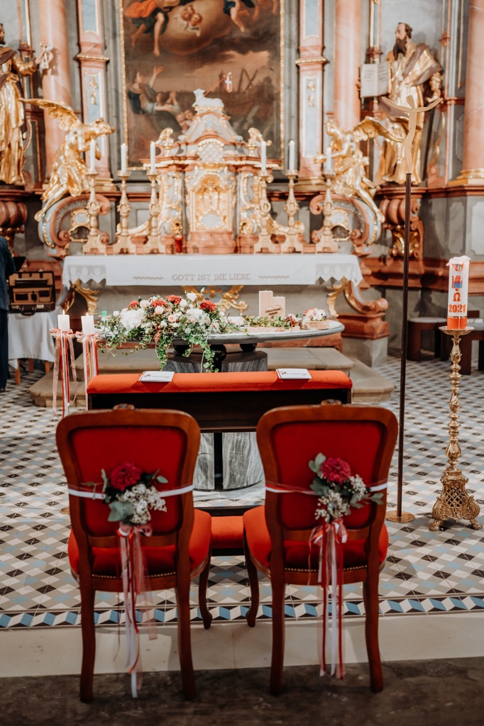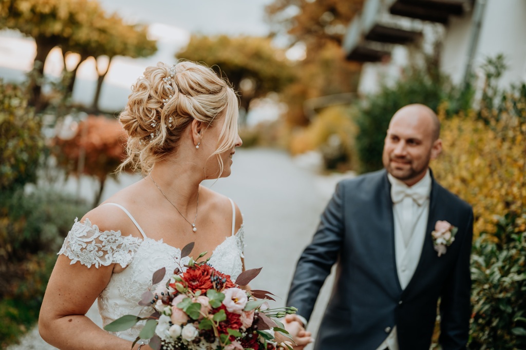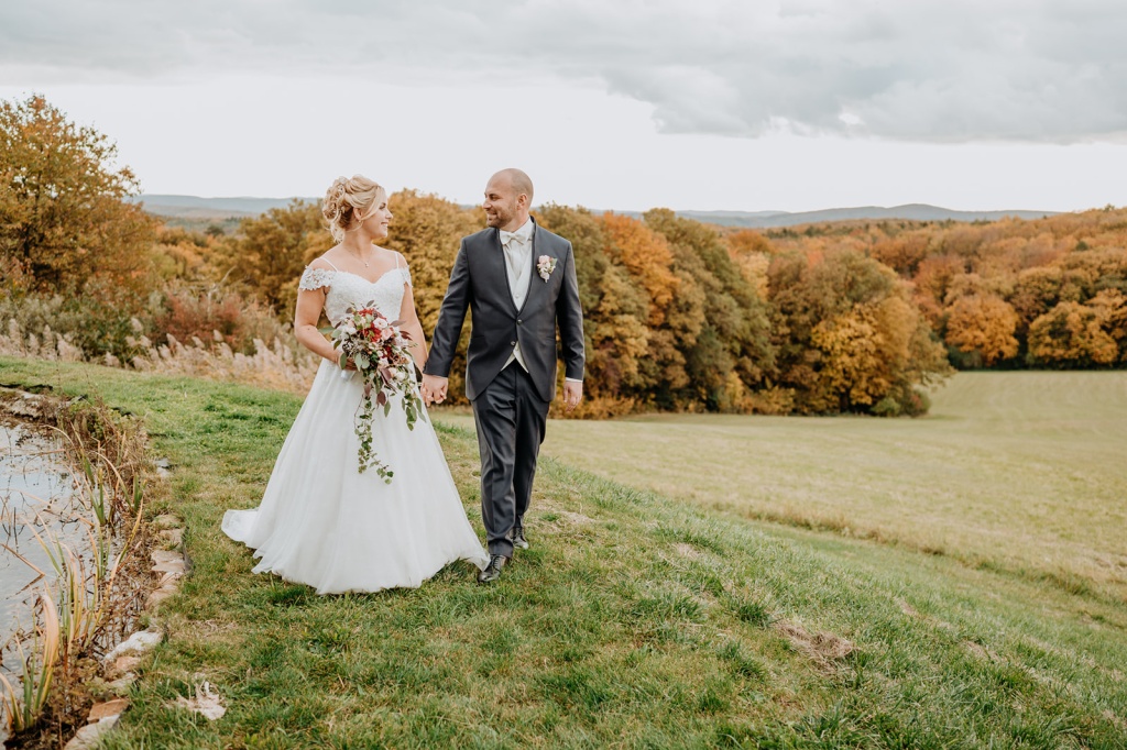 Traumhafte Herbsthochzeit mit kirchlicher Trauung in Langenrohr und Tafel am Tulbingerkogel inkl. Feuershow